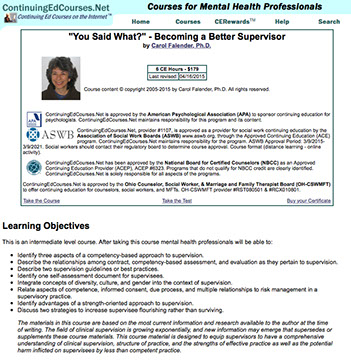 • "You Said What?" - Becoming a Better Supervisor - CE by Carol Falender, Ph.D.